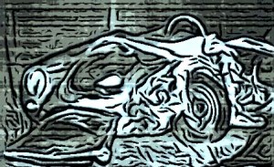 Donovan stared at the victim’s posterior.  “He didn’t have a wallet on him but the impression of his hip pocket has the shape of a wallet.”  He pointed to the ghost of a square shape, using his pen to flick the belt loop above the pocket.  “It’s been cut.  Probably had it chained, biker style.”
